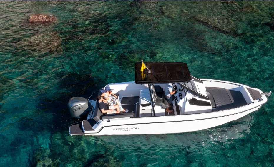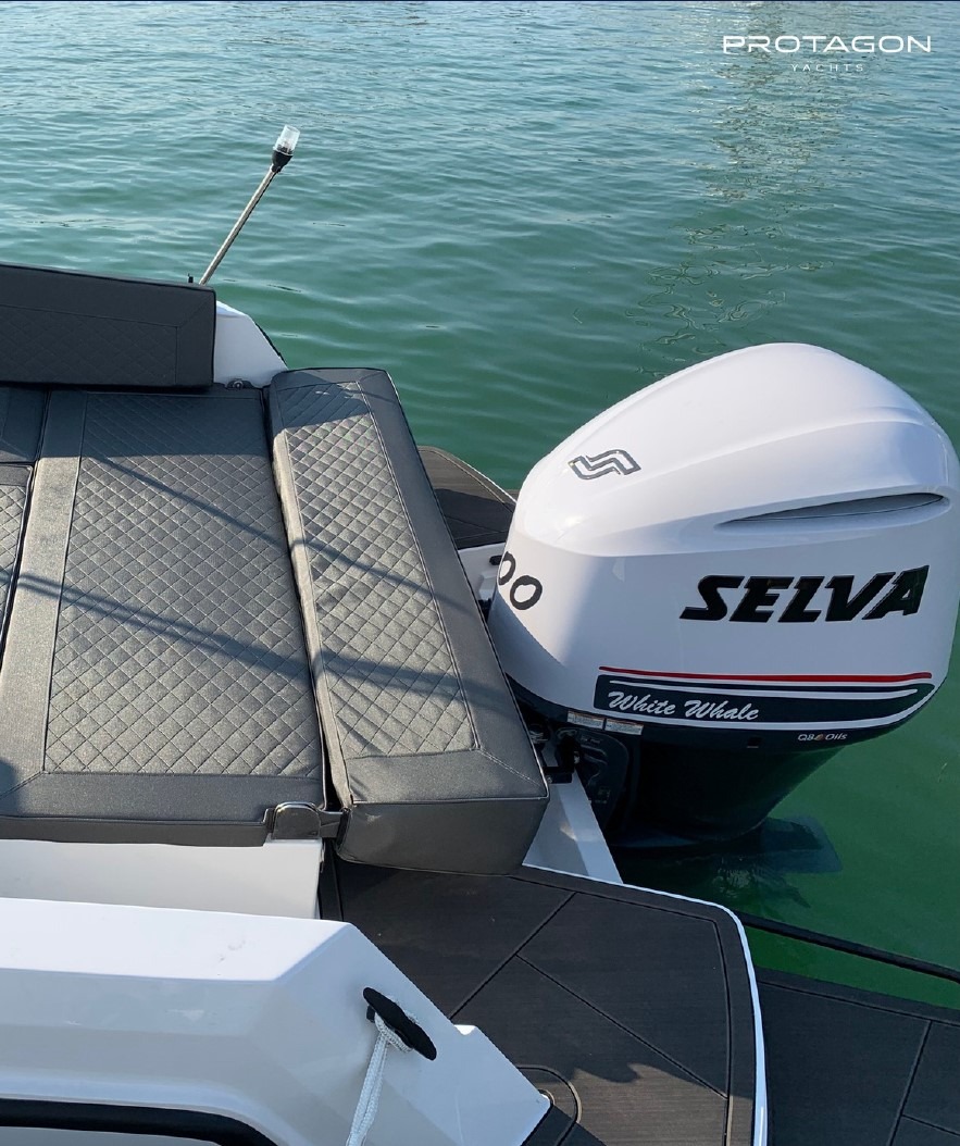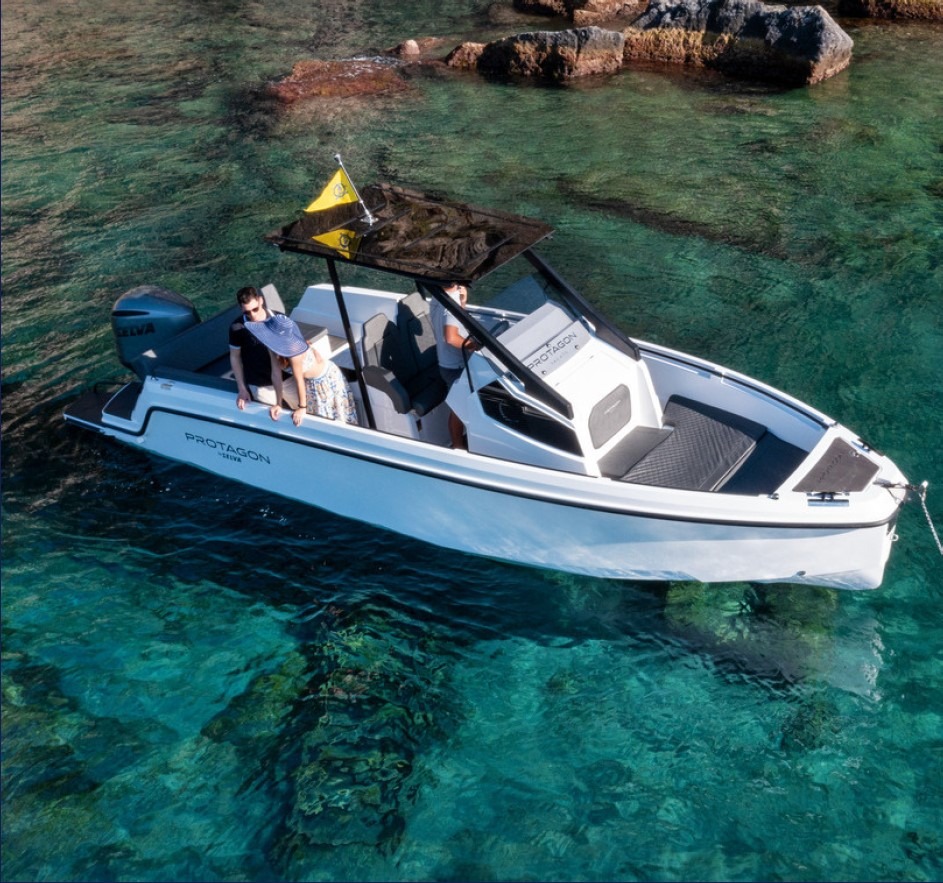 Il Protagon 25 è un moderno e versatile day boat progettato per offrire comfort, prestazioni e stile. Con il suo design, le ampie aree prendisole e una navigazione fluida, è perfetto per la navigazione costiera, garantendo un’esperienza piacevole e rilassante in mare sia per brevi uscite che per charter giornalieri.