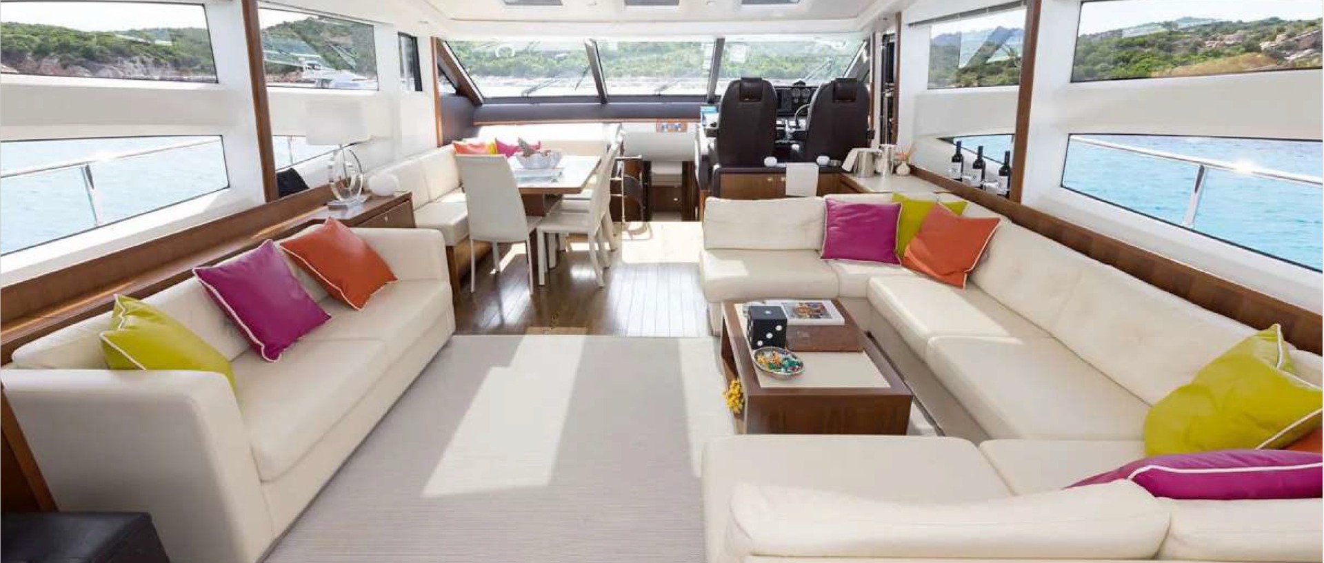 Elegante e spazioso, Princess Yachts 81, è pensato per lunghe crociere all’insegna del comfort. Offre interni raffinati, ampi saloni panoramici, cabine di lusso e grandi spazi esterni sul flybridge e sul ponte di poppa, ideali per relax e intrattenimento. Le sue prestazioni garantiscono una navigazione fluida e stabile anche in mare aperto.